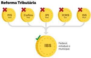 Racionalização - Conforme previsto na PEC 45/2019, da Câmara dos Deputados, e na PEC 110/2019, do Senado Federal, os principais tributos de produtos e serviços - o Imposto sobre Circulação de Mercadorias e Prestação de Serviços (ICMS), o Imposto sobre Serviços (ISS), o Imposto sobre Produtos Industrializados (IPI)] e o Programa de Integração Social/[Contribuição para Financiamento da Seguridade Social (PIS/Cofins) - serão substituídos pelo IBS.